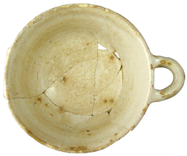 | 5d diversen | glazuur met bruine plekjes; slijtage bodem en rand, snij-/krassporen op spiegel/binnenkant bodem |