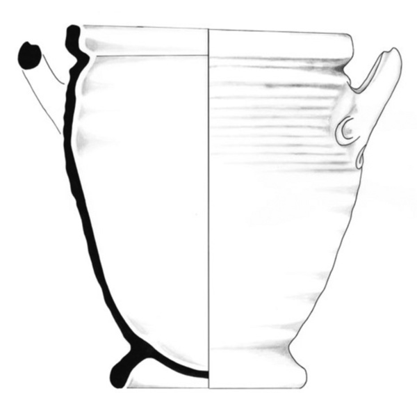 | 5c | van rand tot schouder decoratieve horizontale draairibbels. Ooraanzetten met drie duimindrukken |