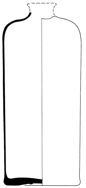 | 4b vorm | hoge vierzijdige fles, groter dan 13 cm, met korte hals, standvlak op licht opgestoken bodem met pontilmerk |