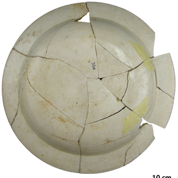 | 5d | slijtage bodem en rand, snij-/krassporen op spiegel/binnenkant bodem, datering op basis van parallelle borden met stempel van dezelfde site spoor 281-283 |