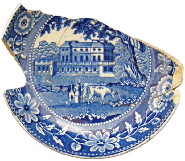 | 5c decoratie | kobaltblauw drukdecor: landschap met koeien en gebouw blauw |
