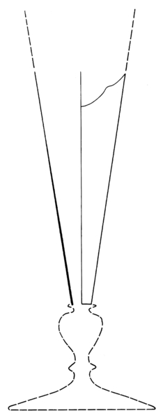| 4b vorm | fluitglas met balusterstam met één of meer schijfjes op de overgang van kelk naar baluster en/of baluster naar schijfvormige voet, voet met pontilmerk |