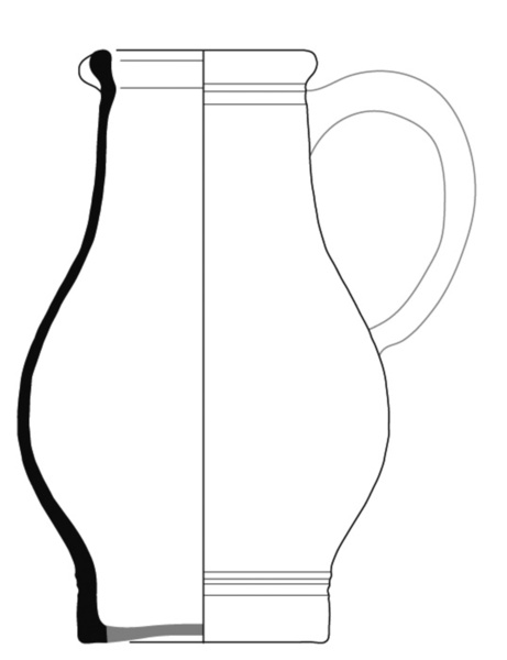 | 4b vorm | hoge biconische kan met afgeronde buikknik en sikkelvormige rand met dekselgeul, standvlak |