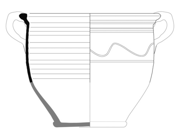 | 4b | bolle pot met wijde hals, sterk verdikte lip met ribbel op randaanzet, standvoet |