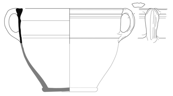 | 4b | bolle pot met wijde hals, sterk verdikte lip met ribbel op randaanzet, standvoet |