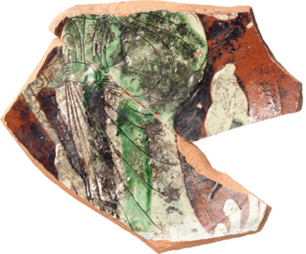 | 5c | witte slibdecoratie, slibkras: menselijk figuur met gewaad en wandelstaf, groene accenten |