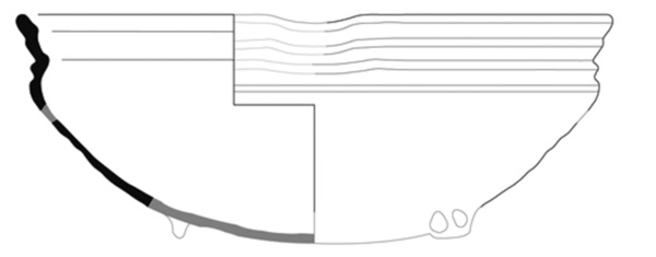 | 4b | bolle kom met ingesnoerde hals en geprofileerde manchetrand, lensbodem met lobvoeten |