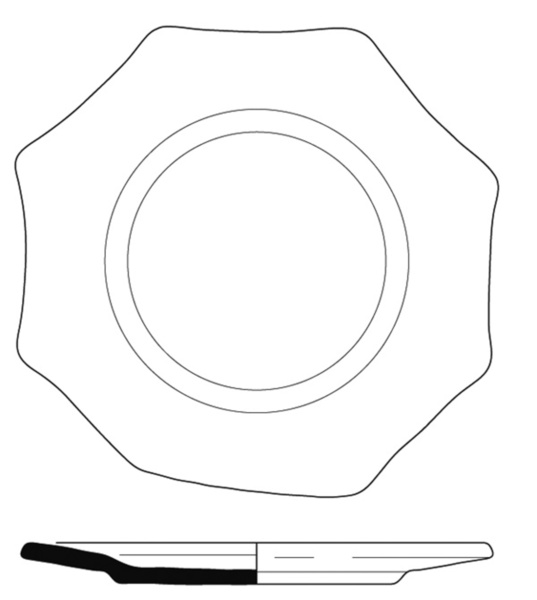 | 4b vorm | plat bord, meerkantig gesneden vlag, inwendig met knik afgezet, standvlak |