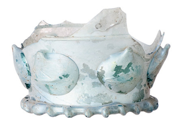 | 4b | conische beker met noppen op benedendeel, cuppa gescheiden door horizontale draad, opgestoken bodem met pontilmerk, voetring |