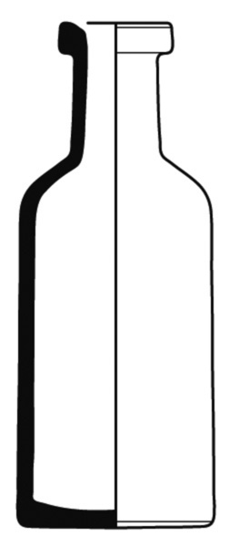 | 4b vorm | kleine cilindrische fles met korte hals met uitstaande, verdikte of omgeslagen lip, met smalle hals (a) met brede hals (b), vormgeblazen of contactvorm met naden, opgestoken bodem, standring of standvlak, met of zonder pontilmerk |