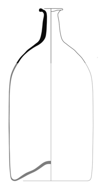 | 4b vorm | grote cilindrische fles met cilindrische hals en uitstaande lip, opgestoken bodem met pontilmerk |