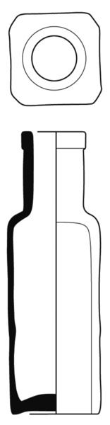 | 4b vorm | vierzijdige medicijnfles met concave hoeken, cilindrische hals, contactvorm met naden, ook met tekst in reliëf, standvlak |