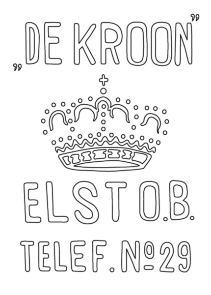 | 5c decoratie | tekst: "DE KROON" ELST O.B. TELEF. No 29, afbeelding van een kroon |
