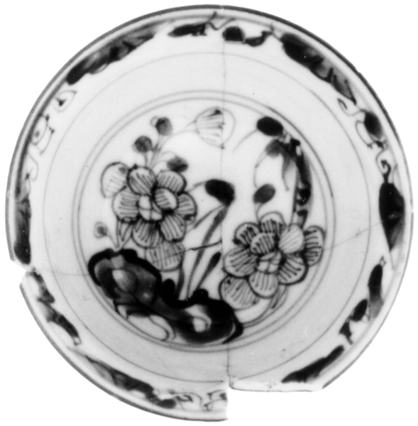 | 5c | inwendig: pioen en randbies met watervogels onderglazuur blauw, uitwendig: rood, bruin of oranje |