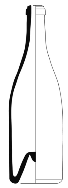 | 4b vorm | dikwandige cilindrische champagnefles waarvan de schouder vloeiend overgaat in een lange hals, afgewerkte lip met platte draad, hoog opgebolde bodem, 1900-1950 draaismeer (1875-1925) |