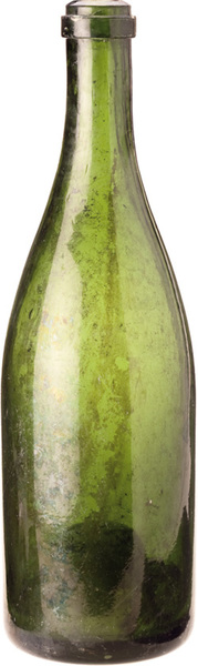 | 4b | dikwandige cilindrische champagnefles waarvan de schouder vloeiend overgaat in een lange hals, afgewerkte lip met platte draad, hoog opgebolde bodem, 1900-1950 draaismeer (1875-1925) |
