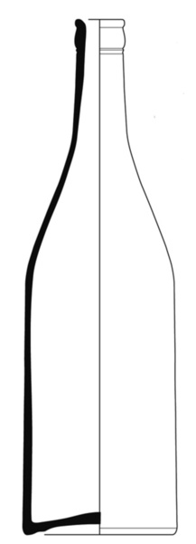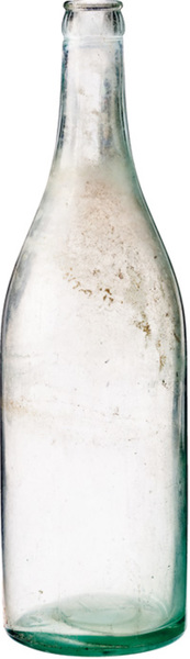 | 4b | cilindrische fles met lange hals en afhangende schouder, cilindrische hals met tweeledig verdikte lip voor kroonkurk, standring, industrieel glas |