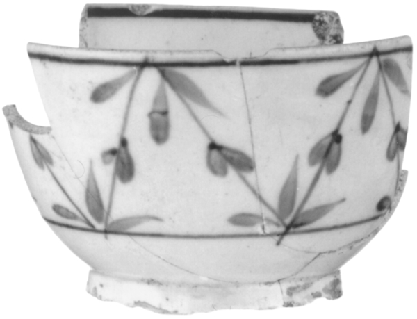 | 5c | uitwendig: onderglazuur: bloemenranken in blauw uitwendig: blauw |