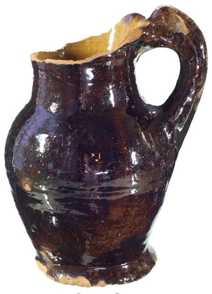 | 5b afwerking (kleur/glazuur) | loodglazuur, uitwendig met mangaanoxide |
