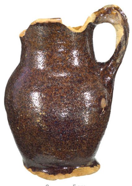 | 5b afwerking (kleur/glazuur) | loodglazuur, uitwendig met mangaanoxide |