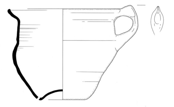 | 4b | steilwandige pispot met buikknik met ribbel, naar buiten geknikte rand, holle bodem |