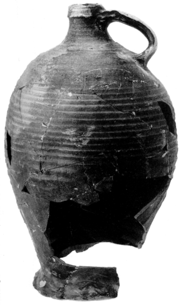 | 4b | bolle voorraadkan met hoge schouder en nauwe hals met kraagrand, standring |