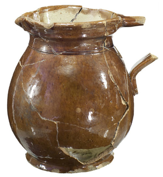 | 5b afwerking (kleur/glazuur) | loodglazuur, uitwendig met mangaanoxide |