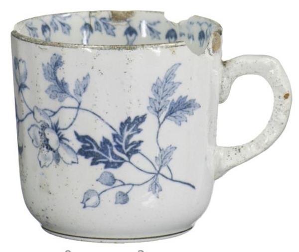 | 5c decoratie | reliëf plooien, drukdecor: Toulouse blauw |