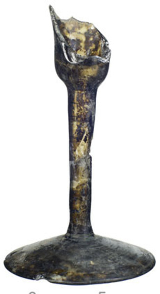 | 4b | dikwandig klokvormig kelkglas met dikwandige bodem, rechte stam, voet met pontilmerk, diverse sieruitvoeringen van stam |