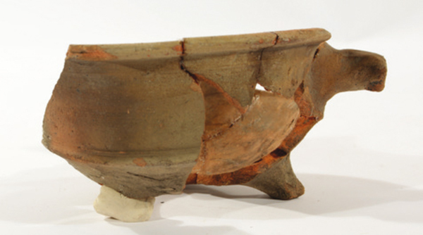 | 4b | ondiepe ronde vuurtest met scherpe knik bodem-wand en naar buiten geknikte lip, lobvoeten |