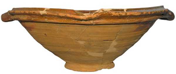 | 4b | grote, wijde kom (melkteil) met zware, aan bovenzijde afgeplatte kraagrand, standring |