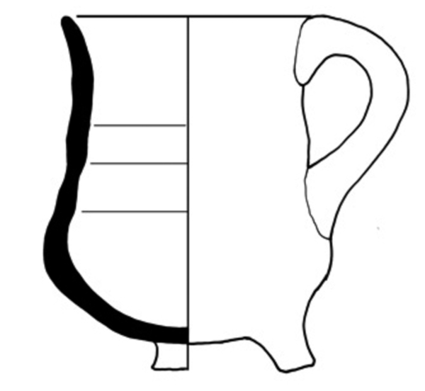 | 4b vorm | hoge grape met afgeronde buik en één of meerdere ribbels op wand, licht uitgebogen rechte rand |