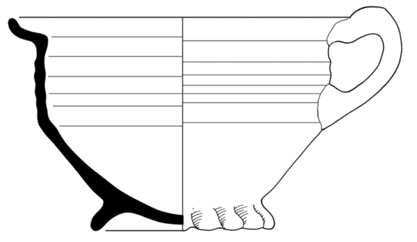 | 4b | pispot met buikknik, naar buiten geknikte rand met platte bovenzijde en smalle kraagrand, standring |