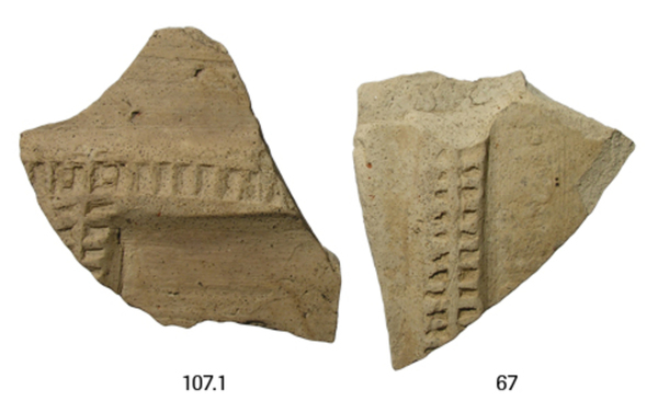 | 5c decoratie | opgelegde kleistrips met radstempel |