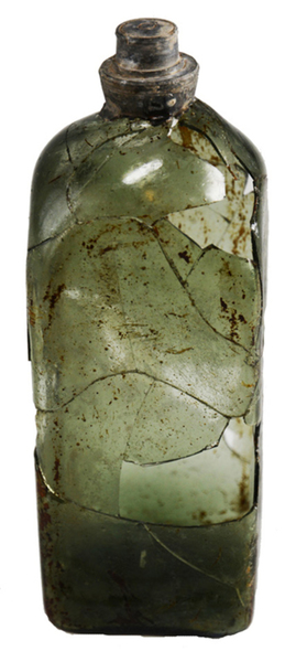| 4b | hoge vierzijdige fles, groter dan 13 cm, met korte hals, standvlak op licht opgestoken bodem met pontilmerk |