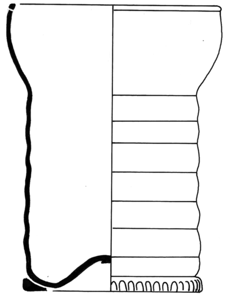 | 4b | cilindrische beker met horizontale ribbels of spiraalvormige ribbeling, met komvormig uitstaande lip, opgestoken bodem met pontilmerk, voetring |