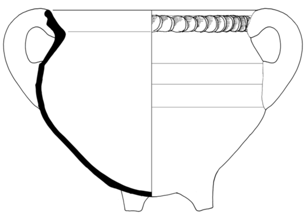 | 4b | grape met scherpe buikknik, ribbels op schouder en kraagrand met dekselgeul |