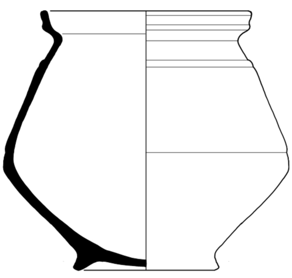 | 4b | hoge bolle pot met (afgeronde) buikknik en kraagrand met dekselgeul, standring |