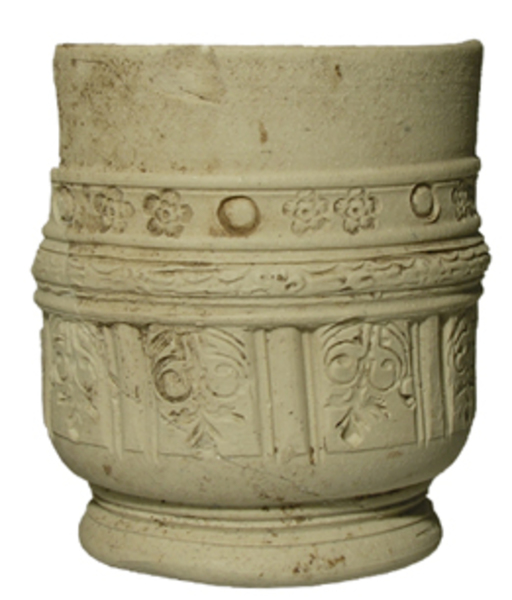 | 4b | vrijwel cilindrische tot licht conische beker met ribbels onder rand en snij- en stempelwerk, standvoet |