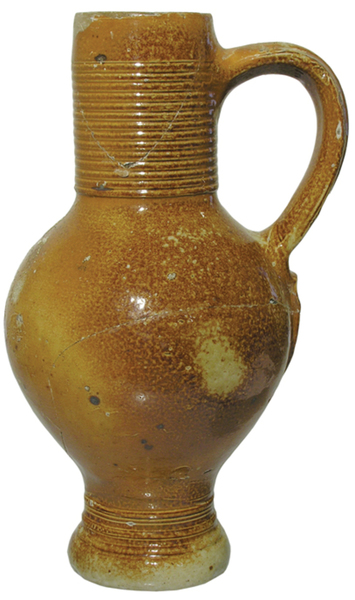| 4b | bolle kan met hoge schouder en hoge cilindrische hals, gegroefde hals, standvoet |