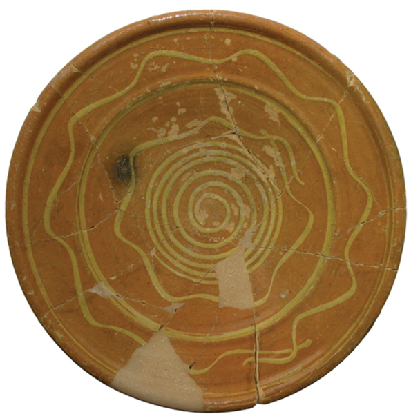 | 4b | afgerond bord met knik spiegel-vlag, iets holle vlag met verdikte afgeronde lip, standring |