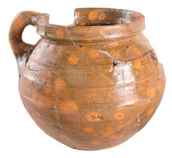 | 4b | bolle pispot met twee ribbels, zonder hals, naar buiten geknikte kraagrand met dekselgeul, standvlak |
