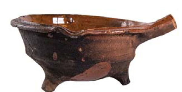 | 4b | steelkom met scherpe knik bodem-wand en uitgebogen rand met dekselgeul, poten |