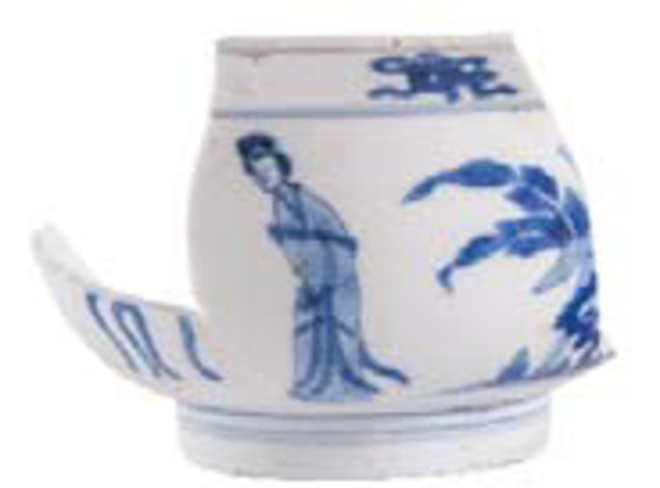 | 5c | 'lange lijzen', achterkant: (hergebruikt) Chenghua keizermerk onderglazuur blauw |
