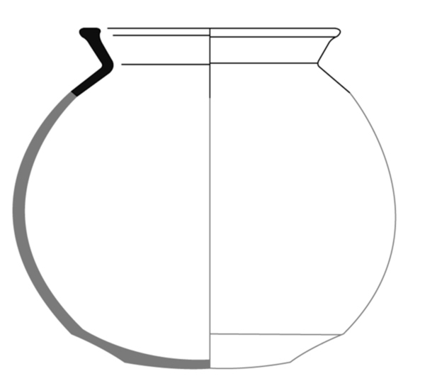 | 4b vorm | bolle pot met hoge, aan de bovenzijde afgevlakte rand, lensbodem |