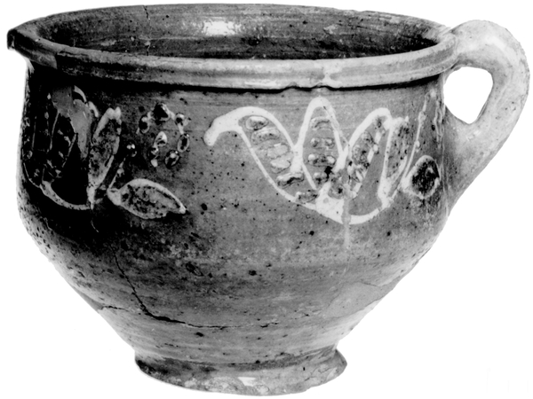| 4b | wijdmondige kan met verticale wand, geribbelde kraagrand, standring |