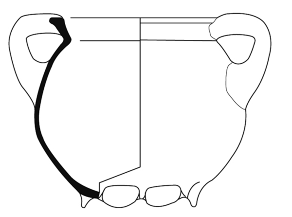| 4b | bolle grape met uitstaande hals, rand aan bovenzijde afgeplat tot richel, lobvoeten |