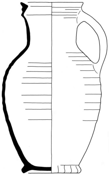 | 4b | bolle kan met naar binnen gebogen geribde verdikte rand of manchetrand, standring |