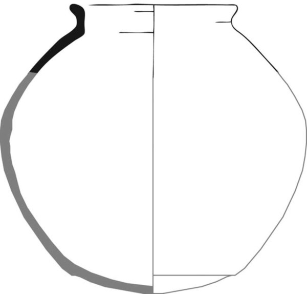 | 4b vorm | bolle pot met hoge, aan de bovenzijde afgevlakte rand, lensbodem |
