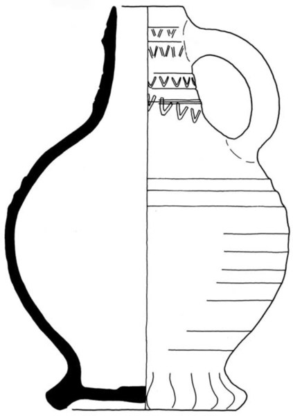 | 5c | op schouder drie geprononceerde ribbels, op hals radstempelversiering |